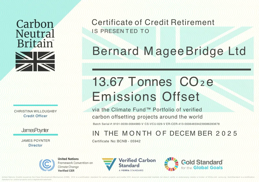 We have teamed up with Carbon Neutral Britain to offset our Carbon Footprint for 2024, and we are delighted to announce that as of December 2025 we are a certified Carbon Neutral Business!